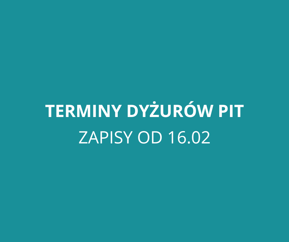 Home Aktualności Dyżury PIT-owe – prosta pomoc w rozliczeniu Dyżury PIT-owe – prosta pomoc w rozliczeniu 10 lutego 2026 W marcu i kwietniu Centrum 3.0 organizuje Dyżury PIT-owe w Strefie. To bezpłatna forma wsparcia dla osób, które potrzebują pomocy przy rozliczeniu podatku dochodowego lub chcą dowiedzieć się, jak przekazać 1,5% podatku na wybraną organizację pożytku publicznego. Dyżury odbędą się: 6 i 25 marca 9 i 24 kwietnia Spotkania będą prowadzone w godzinach 9:30–11:00 w Strefie Seniora przy ul. Studziennej 6. Udział w dyżurach wymaga wcześniejszego zapisu. Liczba miejsc jest ograniczona.Zapisy ruszają 16 lutego i prowadzone są telefonicznie pod numerem: 32 775 20 53. Więcej o 1,5% na stronie TUTAJ Share Tweet Drukuj Wsparcie dla organizacji Baza NGO Lokale - Rezerwacja Oferta dla szkół Oferty wolontariatu Strefa Seniora Do pobrania Wydarzenia Kontakt Podobne artykuły Nowy rok- nowe porozumienia z GCOP 3 stycznia 2020 Ostatni dyżur PIT'owy w tym roku ! (23.04) 23 kwietnia 2018 Rozlicz z nami swój PIT (10.04) 3 kwietnia 2019 Nabór na stanowisko - podinspektor 1 kwietnia 2022 Pilnie poszukujemy wolontariuszy – korepetytorów! 28 listopada 2018 Jaką kwotę przekazaliśmy w 2019 roku na rzecz OPP? 21 kwietnia 2021 Zobacz wszystkie artykuły Kategorie Wernisaż wystawa Wydarzenia Dla najmłodszych Dla mieszkańców Dla seniorów Dla NGO Dla młodzieży Dotacje Kultura Szkolenia Wolontariat Praca Strona internetowa Centrum 3.0 - Gliwickiego Ośrodka Działań Społecznych, wykorzystuje pliki cookies (tzw. ciasteczka). Pliki te są zapisywane w pamięci urządzeń elektronicznych, za pomocą których, strona jest przeglądana. Pliki te są wykorzystywane przez administratora w celach statystycznych. Więcej informacji w polityce cookies. Zamknij