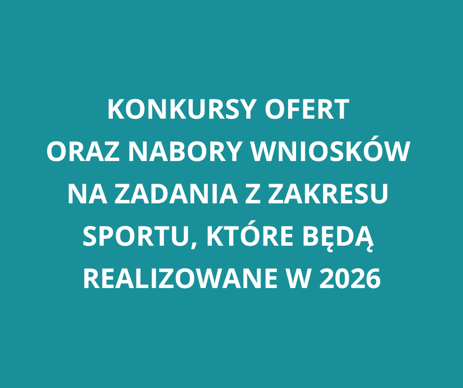 Home Aktualności Konkursy ofert oraz nabory wniosków na zadania z zakresu sportu, które będą realizowane w 2026 r. Konkursy ofert oraz nabory wniosków na zadania z zakresu sportu, które będą realizowane w 2026 r. 21 listopada 2025 Wydział Kultury i Sportu informuje, że zostały ogłoszone następujące konkursy ofert oraz nabory wniosków na zadania z zakresu sportu, które będą realizowane w 2026 r. nabór wniosków o wsparcie finansowe klubów sportowych w formie dotacji celowych na zadania z zakresu sportu realizowane w okresie od 1 stycznia do 31 grudnia 2026 r. w dyscyplinach sklasyfikowanych w Uchwale nr XXII/447/2020 Rady Miasta Gliwice z dnia 17 grudnia 2020 r. jako dyscypliny priorytetowe w grupie I – termin składania wniosków do 5 grudnia 2025 r.; nabór wniosków o wsparcie finansowe klubów sportowych w formie dotacji celowych na zadania z zakresu sportu realizowane w okresie od 1 stycznia do 31 grudnia 2026 r. w dyscyplinach sklasyfikowanych w Uchwale nr XXII/447/2020 Rady Miasta Gliwice z dnia 17 grudnia 2020 r. jako dyscypliny priorytetowe w grupie II – termin składania wniosków do 5 grudnia 2025 r.; otwarty konkurs ofert na realizację zadań publicznych Miasta Gliwice w dziedzinie wspierania i upowszechniania kultury fizycznej w 2026 r. – termin składania ofert do 11 grudnia 2025 r.; otwarty konkurs ofert na realizację zadań publicznych Miasta Gliwice w dziedzinie wspierania i upowszechniania kultury fizycznej w zakresie sportu osób z niepełnosprawnościami w 2026 r. – termin składania ofert do 11 grudnia 2025 r.; otwarty konkurs ofert na realizację zadań publicznych Miasta Gliwice w dziedzinie wspierania i upowszechniania kultury fizycznej w zakresie szkolenia sportowego dzieci i młodzieży w dyscyplinach pozapiłkarskich w 2026 r. – termin składania ofert do 12 grudnia 2025 r. W najbliższym czasie zostanie jeszcze ogłoszony otwarty konkurs ofert na realizację zadań publicznych Miasta Gliwice w dziedzinie wspierania i upowszechniania kultury fizycznej w zakresie szkolenia sportowego dzieci i młodzieży w dyscyplinach piłkarskich (piłka nożna, futsal i plażowa piłka nożna) w 2026 r. składanie ofert i wniosków będzie odbywać się wyłącznie w sposób elektroniczny przez generator eNGO. Ewentualne załączniki również należy składać w formie elektronicznej jako załączniki do wniosków lub ofert. Oznacza to, że organizacje nie będą już musiały drukować i dostarczać do Urzędu Miejskiego papierowych, podpisanych zgodnie z reprezentacją ofert – cały proces zostanie zrealizowany w formie elektronicznej. Wydruki wniosków/ofert będą podpisywane przy zawieraniu umów na realizację poszczególnych zadań w przypadku przyznania dofinansowania. W przypadku pytań lub wątpliwości wyjaśnień udzielą pracownicy Referatu Sportu pod numerami telefonów: (32) 239 11 00, (32) 239 12 11, (32) 238 54 62, (32) 238 54 63, (32) 239 11 54, (32) 239 12 91. Jednocześnie Wydział KSP informuje, że od początku 2026 roku również oferty składane w trybie 19a ustawy o działalności pożytku publicznego i o wolontariacie (tzw. „Małe Granty”) również należy składać wyłącznie przez generator eNGO. Share Tweet Drukuj Wsparcie dla organizacji Baza NGO Lokale - Rezerwacja Oferta dla szkół Oferty wolontariatu Strefa Seniora Do pobrania Wydarzenia Kontakt Podobne artykuły Otwarte spotkanie konsultacyjne - PW 23 sierpnia 2023 WYNIKI NABORU - Starszy Specjalista 3 października 2022 Sprawozdanie z realizacji Programu Współpracy za 2021 rok 5 kwietnia 2022 Kampania RAZEM PRZECIW PRZEMOCY 2 listopada 2022 OPERA NIE GRYZIE! 18.09 12 września 2023 Nabór na stanowisko Podinspektora - dział NGO i projektów 29 kwietnia 2025 Zobacz wszystkie artykuły Kategorie Wernisaż wystawa Wydarzenia Dla najmłodszych Dla mieszkańców Dla seniorów Dla NGO Dla młodzieży Dotacje Kultura Szkolenia Wolontariat Praca Strona internetowa Centrum 3.0 - Gliwickiego Ośrodka Działań Społecznych, wykorzystuje pliki cookies (tzw. ciasteczka). Pliki te są zapisywane w pamięci urządzeń elektronicznych, za pomocą których, strona jest przeglądana. Pliki te są wykorzystywane przez administratora w celach statystycznych. Więcej informacji w polityce cookies. Zamknij